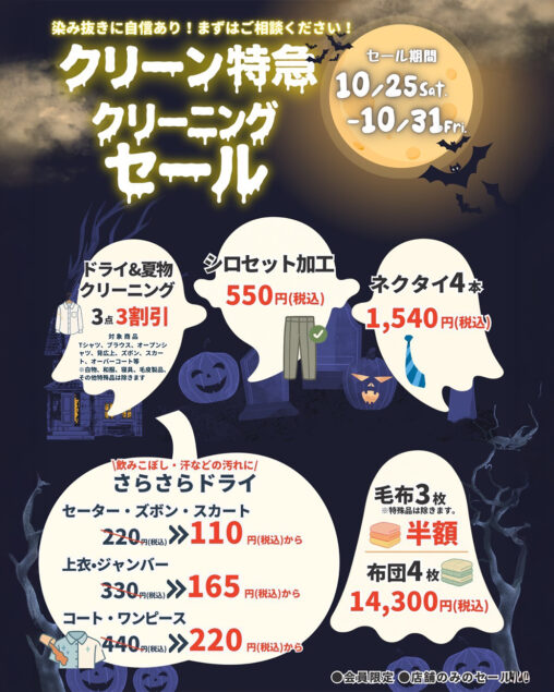 クリーン特急 10月25日(土)~10月31日(金) クリーニングセール