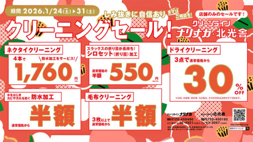 CLEANLINEナリナカ・北光舎 1月24日(土)~1月31日(土) クリーニングセール