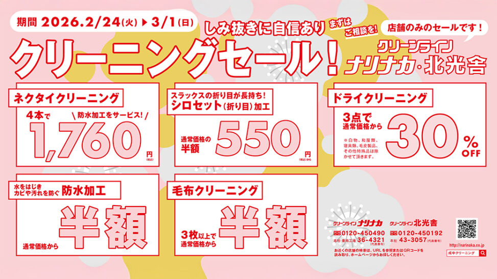 ※白物・和服類・寝具類・毛皮製品・その他特殊品は対象外